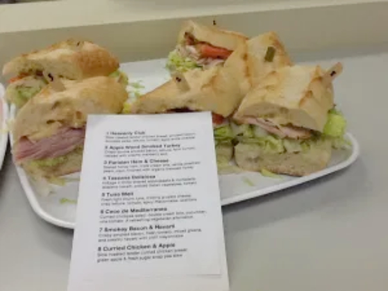 Each time it happens, I feel a tad upset, but not upset enough to warrant much more thought once I am happily savouring the sandwich of my choice. It’s just one of those minor irritations. How delighted I was on this particular day to see a simple and ingenious way of letting us know the ingredients in each sandwich (I attach the photo I took). I complimented my host and I am sure that the caterer will be used again and again!